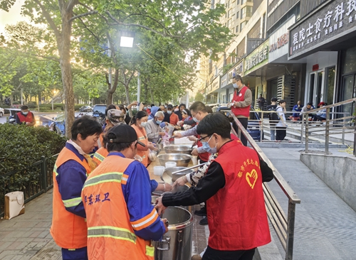 活動(dòng)現(xiàn)場(chǎng),鄭州城發(fā)集團(tuán)的志愿者們分工明確,大家搬桌擺椅、準(zhǔn)備熱粥,有條不紊忙碌著。7時(shí)剛過(guò),附近的環(huán)衛(wèi)工人、孤寡老人陸續(xù)前來(lái),排起長(zhǎng)隊(duì),志愿者們熱情招呼著,依次將熱騰騰的“愛(ài)心早餐”分發(fā)到每一位用餐者手里,還不時(shí)說(shuō)著“辛苦了”“謝謝您”“不夠再添”…… 活動(dòng)現(xiàn)場(chǎng),一句句暖心話(huà)語(yǔ)讓志愿者跟領(lǐng)粥者心拉得更近、氛圍也變得更暖。