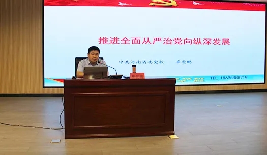 隨后,河南省委黨校崔愛鵬教授作了題為《推進(jìn)全面從嚴(yán)治黨向縱深發(fā)展》的專題培訓(xùn)。培訓(xùn)中,崔愛鵬教授從深刻理解新時代全面從嚴(yán)治黨向縱深發(fā)展的重大意義、全面把握新時代黨的建設(shè)的總要求、貫徹落實習(xí)近平總書記關(guān)于全面從嚴(yán)治黨的重要論述三個方面進(jìn)行了全面剖析和深入解讀,以史實為依據(jù),深入淺出,娓娓道來,使大家充分認(rèn)識到,“嚴(yán)”是立黨的初心品質(zhì),是治黨的鮮明特色,也是強黨的經(jīng)驗優(yōu)勢。堅持從嚴(yán)治黨,更是我們黨克服一切艱難險阻、完成歷史使命的重要政治優(yōu)勢,為集團學(xué)習(xí)黨史、了解黨史,進(jìn)一步做好黨風(fēng)廉政建設(shè)和作風(fēng)建設(shè)工作提供了指南。