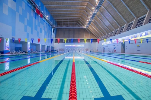 鄭州奧體中心游泳館位于鄭州奧體項(xiàng)目東南端(中原區(qū)長(zhǎng)椿南路與博體路交匯處),是鄭州市甲級(jí)游泳場(chǎng)館,鄭州奧體中心游泳館建筑面積1.9萬(wàn)平方米,館內(nèi)設(shè)有3100個(gè)固定座席,擁有標(biāo)準(zhǔn)10道50米競(jìng)賽池,10道50米訓(xùn)練池,10道25米教學(xué)池,既有可以承辦國(guó)際賽事的專(zhuān)業(yè)級(jí)比賽場(chǎng)館,又有滿(mǎn)足全民運(yùn)動(dòng)的標(biāo)準(zhǔn)泳池,更配備了完善的更衣休閑區(qū)及全館智慧科技系統(tǒng),市民朋友可以盡享宏偉水上場(chǎng)館的視覺(jué)沖擊與暢快運(yùn)動(dòng)的極致體驗(yàn)!