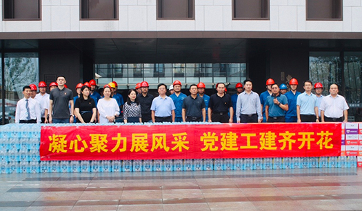 8月12日下午,鄭州市總工會副主席許振亞、市機關工會主任王銀倉在鄭州地產(chǎn)集團黨委委員、監(jiān)事會主席李靜波,河南大通投資有限公司黨支部書記、董事長李倩的陪同下,到鄭地美景東望項目開展“凝心聚力展風采,黨建工建齊開花”慰問送清涼活動。