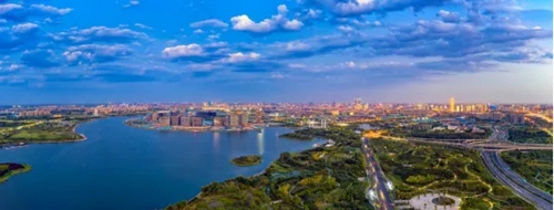 金融島,位于鄭州北龍湖中部核心,由雙環(huán)44棟高層建筑圍合而成,以3.7公里宛如玉帶的南北運(yùn)河為連接,與CBD共同形成寓意吉祥的“如意”造型。