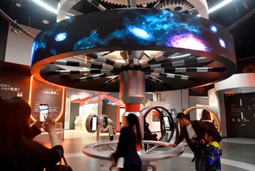 同時,這里以中國科學(xué)家、雙碳目標等社會熱點內(nèi)容,以鄭州市為主體提煉電力中樞、智慧電網(wǎng)等地方特色內(nèi)容,實現(xiàn)主題特色在內(nèi)容設(shè)計、空間規(guī)劃、形式創(chuàng)意中的多元融合。將抽象的知識通過電磁的故事、趣味性強的創(chuàng)意展項展示給觀眾,集互動參與、活動教育于一體的電磁主題科學(xué)空間,從而激發(fā)青少年的好奇心、探究力、創(chuàng)造力,引導(dǎo)青少年“像科學(xué)家一樣”去提問、探索、試錯、分析。