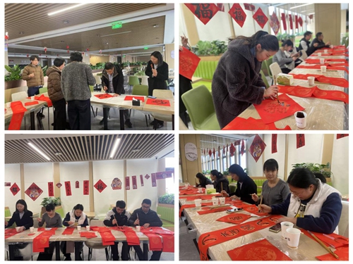 在這如詩(shī)如畫(huà)的美好時(shí)刻,我們以一副春聯(lián)凝聚夢(mèng)想的光輝,迎接新春的腳步?;顒?dòng)伊始,來(lái)自城發(fā)產(chǎn)城公司工程設(shè)計(jì)部的張馨友老師現(xiàn)場(chǎng)揮毫潑墨,他的筆下,每一劃都似春風(fēng)拂面,每一點(diǎn)都像細(xì)雨潤(rùn)心,將美好的愿景與溫暖的問(wèn)候融入到那一幅幅靈動(dòng)的字跡之中。與此同時(shí),活動(dòng)現(xiàn)場(chǎng)精心準(zhǔn)備了豐富的書(shū)寫(xiě)工具,這里,不僅是紙墨交融的地方,更是心靈交匯、智慧碰撞的空間,在揮灑筆墨的過(guò)程中體驗(yàn)到了傳統(tǒng)文化的獨(dú)特魅力。