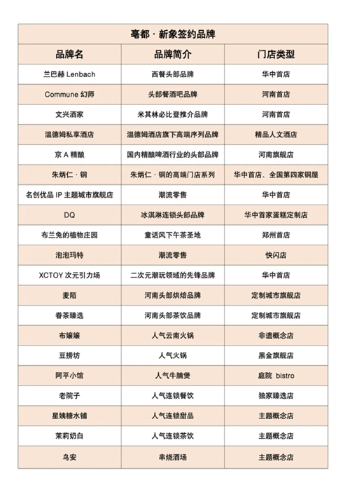 發(fā)布會(huì)上,蘭巴赫LENBACH華中首店、COMMUNE幻師河南首店、米其林必比登推薦的文興酒家河南首店、溫德姆私享酒店、京A精釀河南旗艦店、朱炳仁·銅全國(guó)第四座銅屋“中原銅屋”華中首店、名創(chuàng)優(yōu)品IP主題城市旗艦店華中首店、XCTOY次元引力場(chǎng)華中首店、DQ華中首家蛋糕定制門店、布蘭兔的植物莊園鄭州首店…等品牌確定進(jìn)駐項(xiàng)目,占比超30%的首進(jìn)品牌,讓亳都·新象成為鄭州首發(fā)經(jīng)濟(jì)的策源地之一。