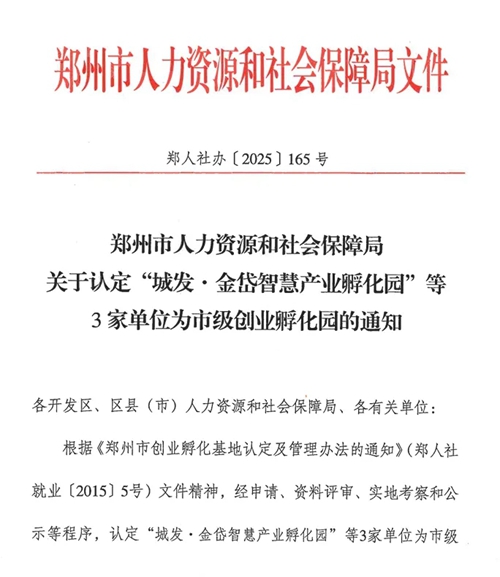 近日,鄭州市人力資源和社會保障局發(fā)布關(guān)于認(rèn)定“城發(fā)·金岱智慧產(chǎn)業(yè)孵化園”等3家單位為市級創(chuàng)業(yè)孵化園的通知。根據(jù)《鄭州市創(chuàng)業(yè)孵化基地及管理辦法的通知》(鄭人社就業(yè)〔2015〕5號)文件精神,經(jīng)申請、資料評審、實地考察和公示等程序,認(rèn)定“城發(fā)·金岱智慧產(chǎn)業(yè)孵化園”等3家單位為市級創(chuàng)業(yè)孵化園,并頒發(fā)鄭州市創(chuàng)業(yè)孵化園榮譽(yù)牌匾。