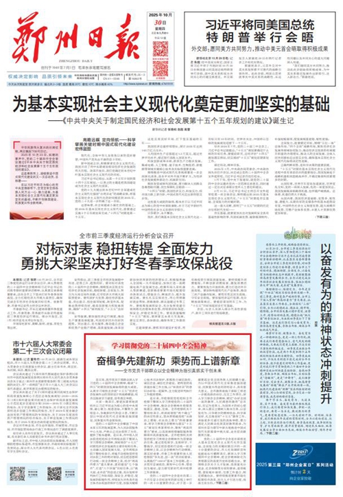 黨的二十屆四中全會擘畫了中國式現(xiàn)代化建設(shè)的宏偉藍圖,為新時代新征程國有企業(yè)改革發(fā)展指明前進方向、提供根本遵循,鄭州城發(fā)集團廣大黨員干部群眾深受鼓舞、倍感振奮。近日,《鄭州日報》《鄭州晚報》開設(shè)了【學習貫徹黨的二十屆四中全會精神】專欄,2025年10月30日,報道了鄭州城發(fā)集團深入學習貫徹落實黨的二十屆四中全會精神,以全會精神為指引真抓實干創(chuàng)未來。