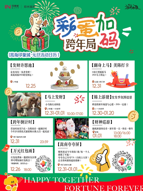 12月31日-1月3日,憑快樂(lè)幣可免費(fèi)騎小馬、抽獎(jiǎng)、兌換零食禮包,輕松實(shí)現(xiàn)童趣與味蕾雙重滿足??缒暌梗虉?chǎng)營(yíng)業(yè)時(shí)間延長(zhǎng)至23:00后自然閉店,大屏同步跨年倒計(jì)時(shí),和親友一起在歡呼聲中迎接2026,氛圍感直接拉滿!