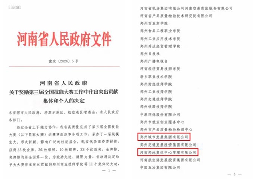 近日,河南省人民政府印發(fā)《關(guān)于獎(jiǎng)勵(lì)第三屆全國技能大賽工作中作出突出貢獻(xiàn)集體和個(gè)人的決定》,對(duì)在第三屆全國技能大賽中表現(xiàn)優(yōu)異、貢獻(xiàn)突出的集體和個(gè)人予以隆重表彰。其中,鄭州城市發(fā)展集團(tuán)有限公司、河南鄭地奧體中心管理有限公司榮獲集體記功,這份榮譽(yù)既是對(duì)兩單位賽事保障工作的高度肯定,更是對(duì)其踐行國企擔(dān)當(dāng)、彰顯匠心精神的有力褒獎(jiǎng)。