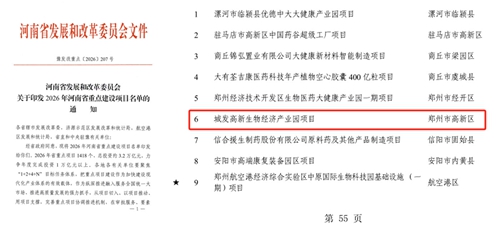 4月2日,河南省發(fā)展改革委發(fā)布通知,經(jīng)省政府同意,2026年河南省重點(diǎn)建設(shè)項(xiàng)目名單正式公布。名單明確,今年全省重點(diǎn)項(xiàng)目共1418個,總投資約3.2萬億元,力爭年度完成投資1萬億元以上。其中,城發(fā)·高新生物經(jīng)濟(jì)產(chǎn)業(yè)園成功入選,這是該項(xiàng)目繼2025年首次躋身省級重點(diǎn)建設(shè)項(xiàng)目行列后,再次被列入該序列,彰顯其在全省生物經(jīng)濟(jì)發(fā)展布局中的重要地位。