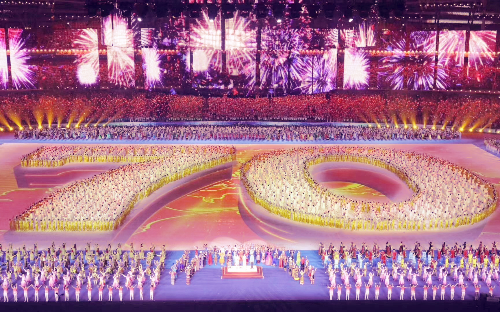 20時50分許,汪洋宣布:中華人民共和國第十一屆少數(shù)民族傳統(tǒng)體育運動會開幕!