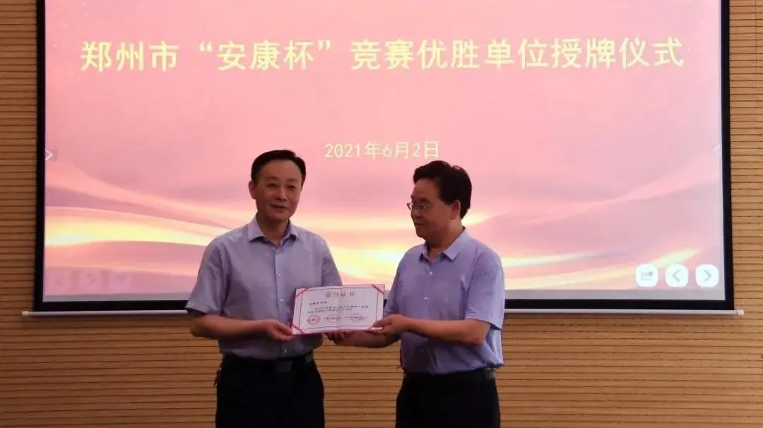 6月2日下午,鄭州市總工會機關工會主任王銀倉、市總工會勞動和經(jīng)濟部部長宋慧分別向集團兩家獲獎公司頒發(fā)鄭州市“安康杯”競賽優(yōu)勝單位獎牌。